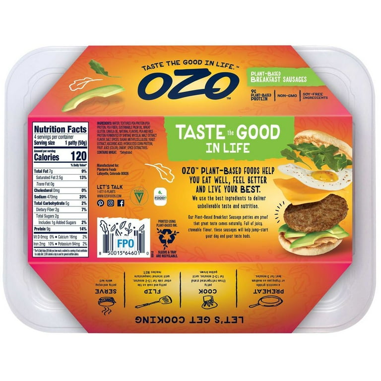 Ozo Plant Based Original Breakfast Sausage 32 Per Case Walmart Com
